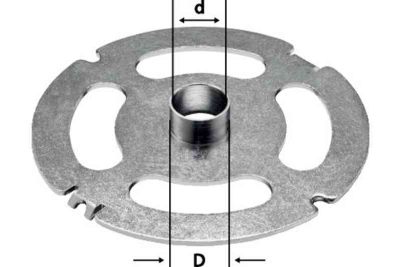 Anel copiador para a condução segura da fresadora na fresagem com um molde. Aqui, é irrelevante qual o formato do molde.