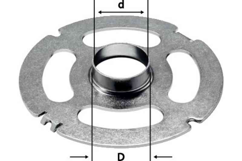 Anel copiador para a condução segura da fresadora na fresagem com um molde. Aqui, é irrelevante qual o formato do molde.