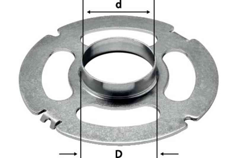 Anel copiador para a condução segura da fresadora na fresagem com um molde. Aqui, é irrelevante qual o formato do molde.