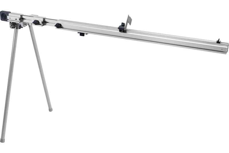 A escala de medidas integrada e o posicionador permitem cortes repetíveis com precisão de 1200 - 2050 mm|O prolongamento telescópico com escala adequa-se para peças a trabalhar mais compridas até 2,40 m|O batente pode ser utilizado com e sem bancada esquadrejadeira|É possível uma utilização de ambos os lados