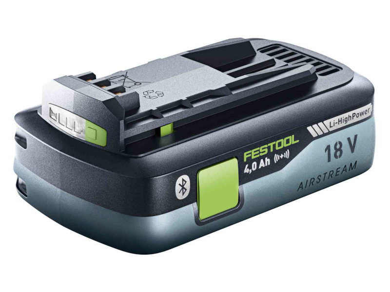 Bateria de iões de lítio (Li-Ion) Bluetooth® com função AIRSTREAM para todas as ferramentas de bateria de 18 V da Festool (exceto CXS, TXS, ETSC 125, RTSC 400, DTSC 400).