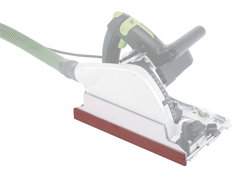 A proteção cumpre duas funções. Ela tapa toda a superfície lateral da caixa da serra de incisão para melhorar a aspiração de pó e também pode ser usada como batente para fendas de remate.