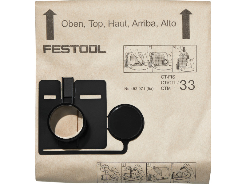 Filtro de papel para a aspiração de poeiras com fecho de plástico.