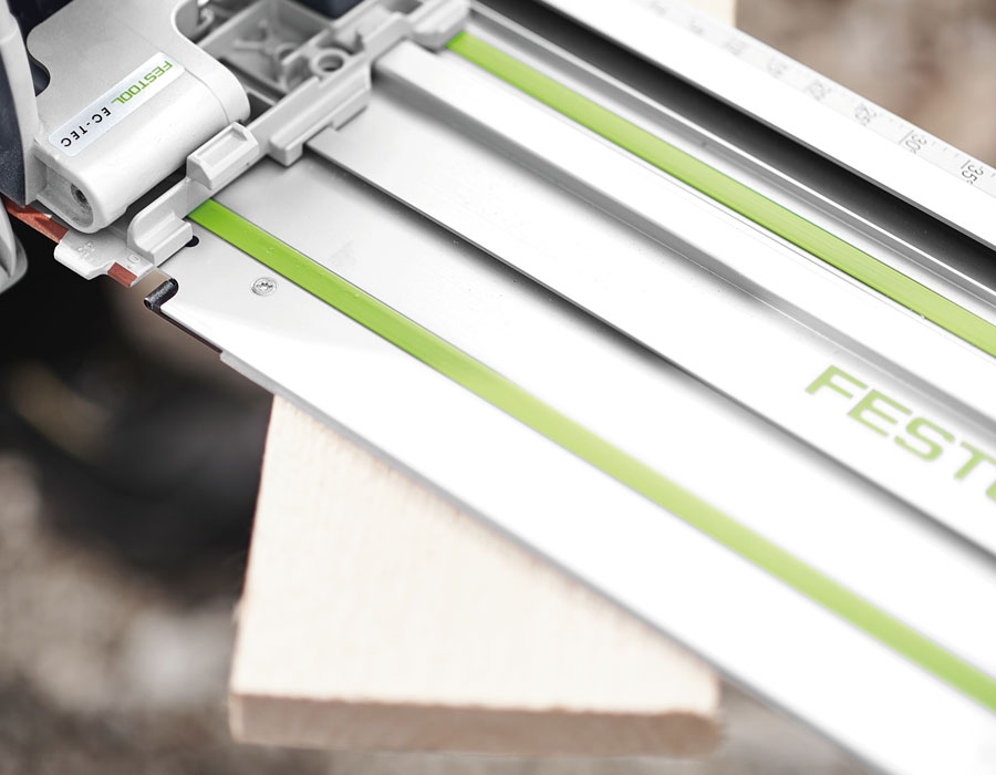Mobilidade e independência graças a bateria de 18V de iões de lítio e trilhos de chanfrar acopláveis.