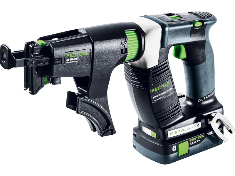 Robusto e resistente: motor EC-TEC sem escovas e isento de manutenção para uma longa vida útil, grande rendimento e máxima resistência|Rapidez nos aparafusamentos em série: possibilidade de substituição rápida e sem recurso a ferramentas para carregador de parafusos ? para o processamento de parafusos em fita|Função Start/Stop com poupança de energia: o motor só funciona quando é necessário|Trabalhar com precisão: desativação eletrónica sem desgaste para uma profundidade de aparafusamento exata|Potência de bateria individual: para a maior facilidade em aplicações leves e casos de aplicação mais simples com a bateria Compact de 3,1 Ah. Ou para força e duração máximas com a bateria Li-HighPower Compact de 4,0 Ah (suficientemente potente para qualquer aplicação, sendo 20 % mais leve e 50 % mais compacta do que uma bateria standard de 5,2 Ah). Também pode utilizar com as baterias disponíveis na variante básica ou selecionar separadamente a sua bateria preferida|Disponível em duas variantes: DWC 18-2500 com binário ideal para aparafusar placas de fibrogesso e de madeira. DWC 18-4500 com o número de rotações mais alto para aparafusamentos em série no mais curto espaço de tempo ? ideal para placas de gesso|Extremamente resistente: graças às células da bateria resistentes a altas intensidades de corrente, as baterias Li-HighPower Compact são extremamente duradouras. E beneficiam, naturalmente, da proteção completa do Festool Service, incluindo a nossa reparação completa gratuita. Rápido, eficaz e absolutamente único, também para baterias e carregadores: gratuito nos primeiros três anos. (Para conhecer as condições de garantia, consulte www.festool.pt/servico)