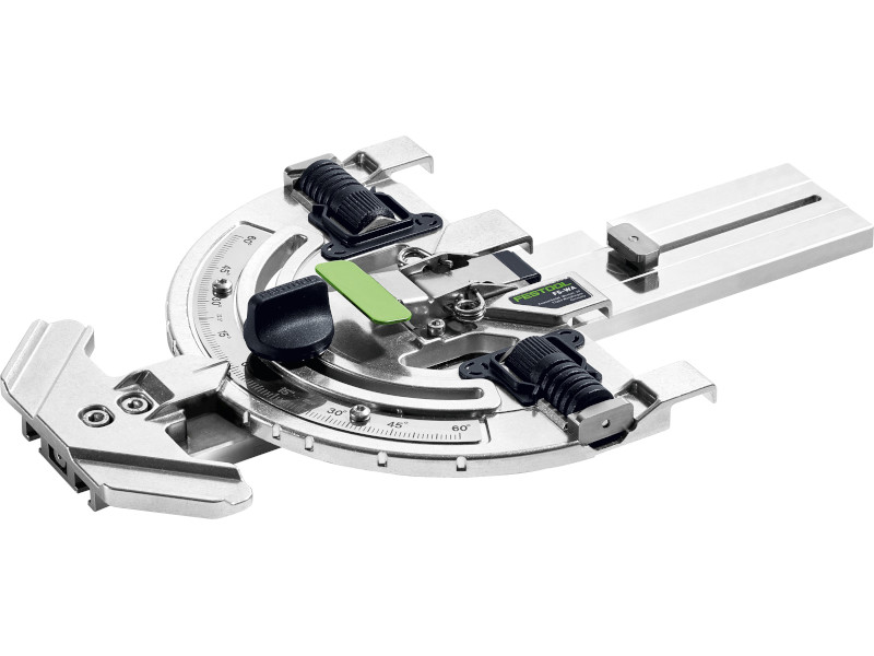 Desenho de alta qualidade que permite realizar cortes angulares precisos de -60° a + 60°|Acoplável de forma simples e rápida ao trilho-guia através da alavanca de aperto rápido ? bem como totalmente autoalinhável|Aresta de contacto comprida e janela de observação para orientação simples na aresta da peça a trabalhar|Cavilhas de encosto adicionais ? para uma superfície de contacto segura mesmo no caso de materiais com arestas arredondadas da peça a trabalhar|Ajuste intuitivo ? todos os elementos de comando podem ser operados a partir de cima sem recurso a ferramentas