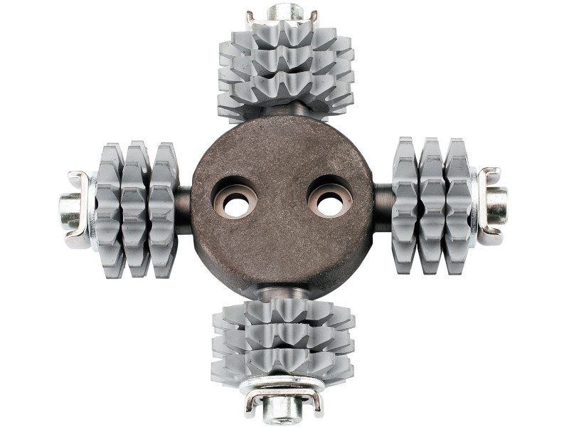 O cabeçote de ferramenta SZ-RG 80 com doze fresas desincrustadoras de metal duro para a RG 80. O formato pontiagudo permite encrespar a base e remover, de forma simples e rápida, o material por soltar.