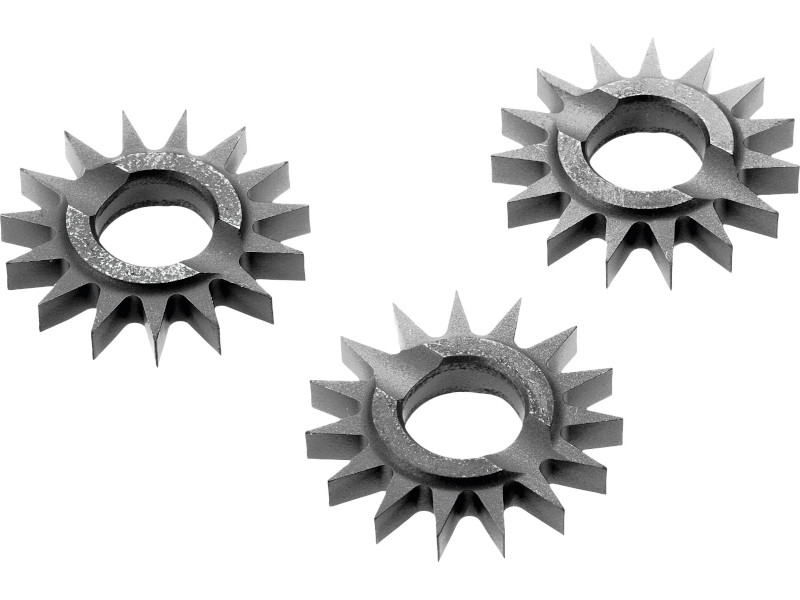O conjunto para o reequipamento com 35 fresas desincrustadoras de metal duro para o cabeçote SZ-RG 150. O formato pontiagudo permite encrespar a base e remover, de forma simples e rápida, o material por soltar.