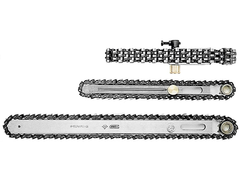 Montagem simples na serra embutidora de corrente|Ajuste simples da tensão da corrente através com parafuso de ajuste|Recetáculo de lubrificante (bocais de lubrificação Stauffer) para a lubrificação do conjunto com vista a uma vida útil mais longa|Possibilidade afiamento repetido da corrente de fresar