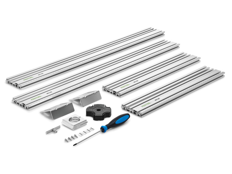 Cortes e raios absolutamente perfeitos graças à escala milimétrica nos perfis|Orientado com exatidão para a peça a trabalhar ? graças aos batentes angulares|Fixação rápida ? fixação da peça a trabalhar através da ranhura pré-definida para sargentos e grampos de alavanca|Possibilidade de ampliação sistemática ? com prolongamentos de 200 mm a 2000 mm