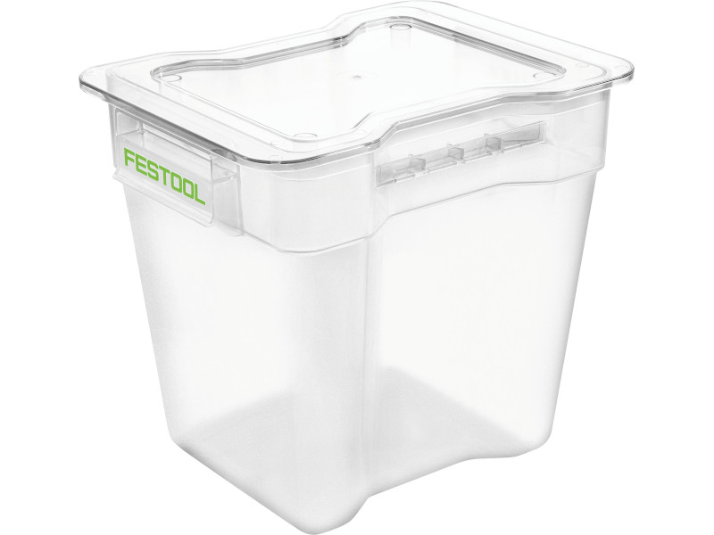 Remoção simples e segura de grandes quantidades de pó, com fecho limpo com a tampa|Visualização cómoda do nível de enchimento graças ao material transparente|Empilhável para um transporte cómodo e com economia de espaço|Boas possibilidades de manuseamento e dimensões compactas para uma boa utilização|Construção robusta para uma longa vida útil
