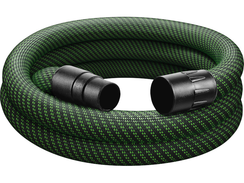 O revestimento exterior robusto e liso impede o prendimento do tubo flexível|Tubo flexível de aspiração interior, extremamente elástico para flexibilidade máxima|A luva de aspiração CLEANTEC une o tubo flexível de aspiração e a ferramenta elétrica de forma segura com um fecho de baioneta|Com chip RFID para a deteção automática do tubo flexível de aspiração