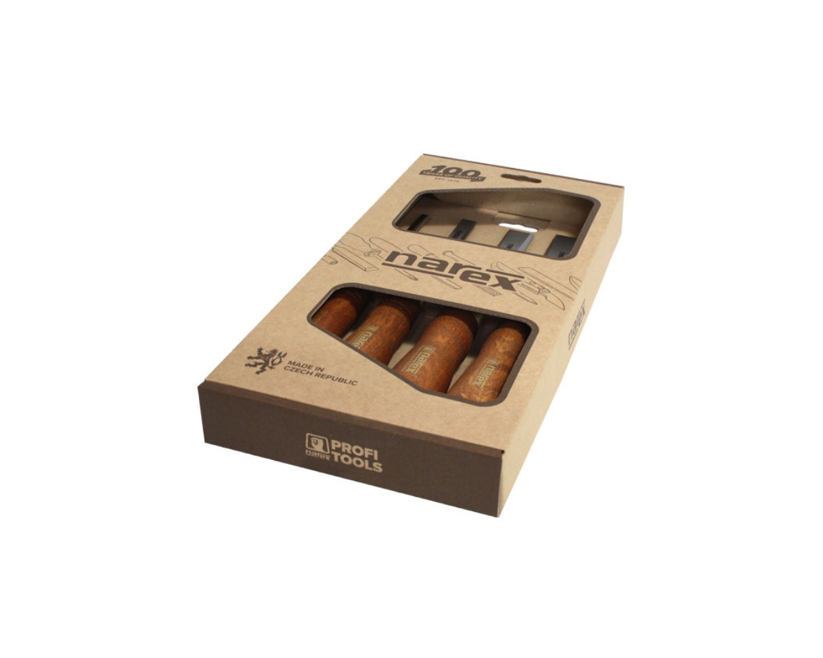 Formão inovador com seção transversal aprimorada da lâmina que minimiza o atrito ao cortar madeira.